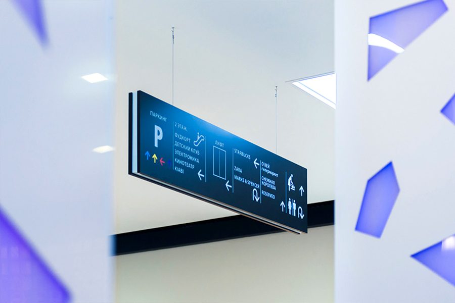 Навигационная реклама - это совокупность вывесок, указателей, табличек, которые позволяют посетителю четко ориентироваться в помещении. Особенно важна такая навигация в тортовых залах, крупных компаниях (которые занимают далеко не один офис или, например, расположены в большом бизнес-центре). Для такого типа рекламы важно, что бы она была хорошо видна с расстояния и легко читаема. Так как навигация является частью интерьерной рекламы, очень важно, чтобы она была выполнена в едином стиле со всем помещением.
