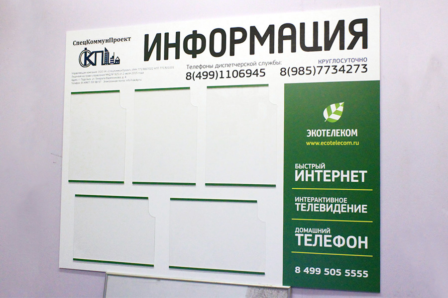 Изготовление информационного стенда может потребоваться любой организации, так как это очень простой и удобный способ размещения любой информации. Такой стенд позволяет крайне быстро сменить размещенную на нем информацию. Условно информационные стенды можно разделить на обязательные, справочные и рекламные. Обязательные стенды — это «Уголок потребителя», «Уголок пожарной безопасности» и др. Справочные стенды очень часто размещаются в государственных и муниципальных учреждениях (администрации, комитеты, школы, больницы, детские сады и т.д.). И рекламные, в свою очередь, используются коммерческими организациями, где размещается информация по акциям, ценам, услугам.